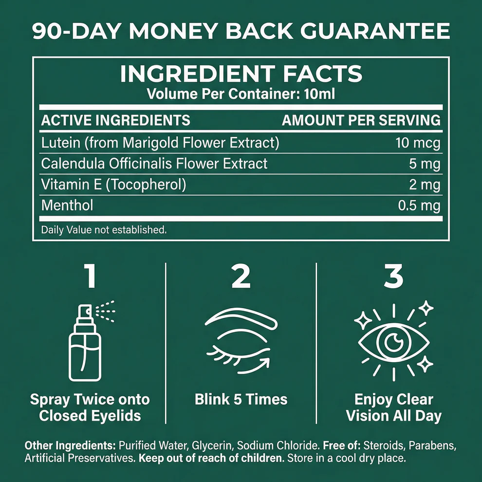 Every ingredient — Lutein, Calendula Officinalis, and Vitamin E — is supported by clinical research on eye health and macular protection. Our formula is designed around peer-reviewed studies on lutein absorption and age-related vision decline. Science-backed ingredients. Real results.