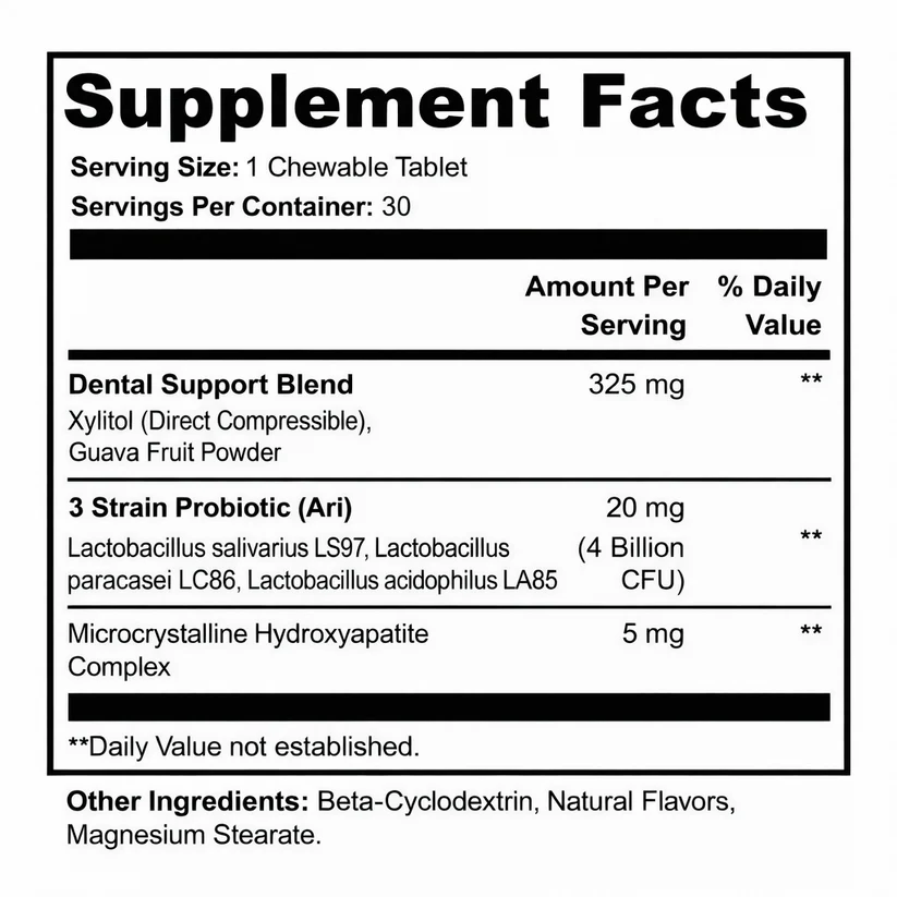 Always chew it or let it dissolve slowly in your mouth. This is not a gut probiotic. Swallowing it whole sends the probiotics to your stomach and skips the entire area that matters. The chewable delivery is what makes Vital work — it puts the good bacteria exactly where they need to be.