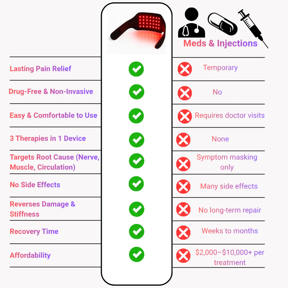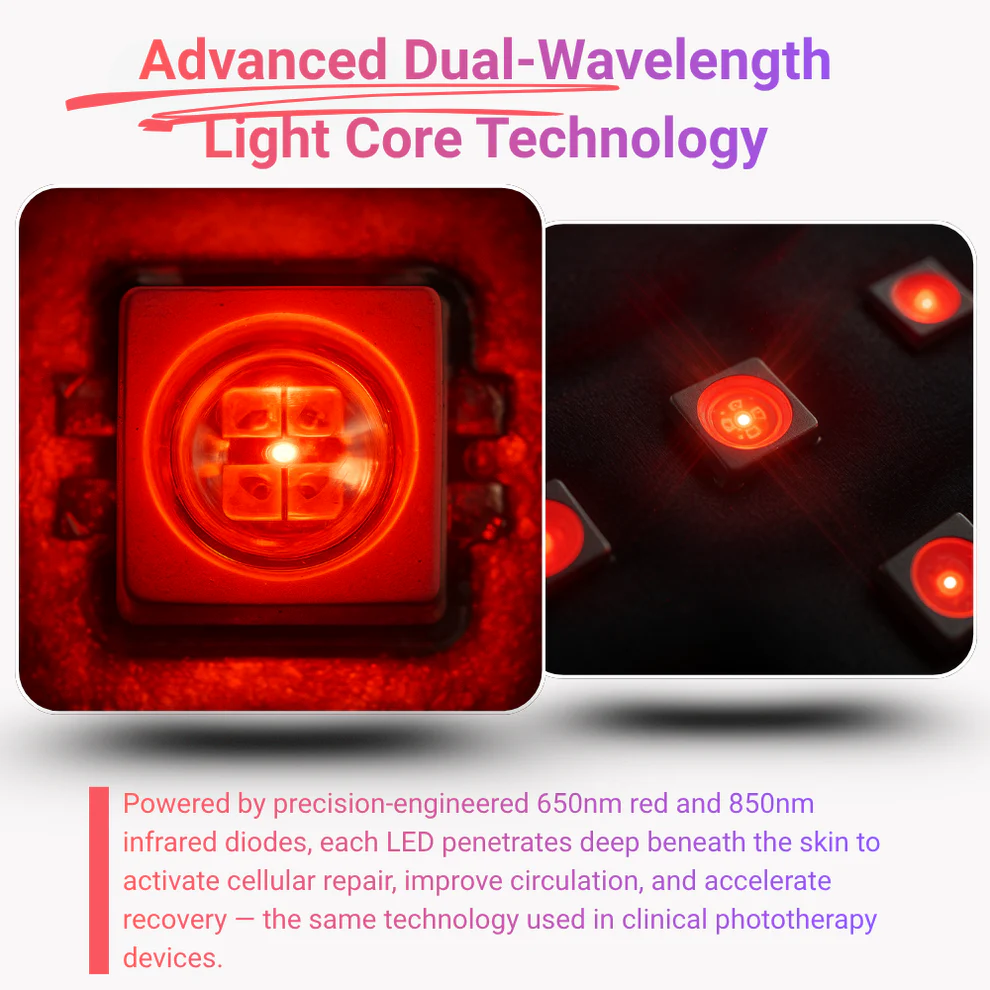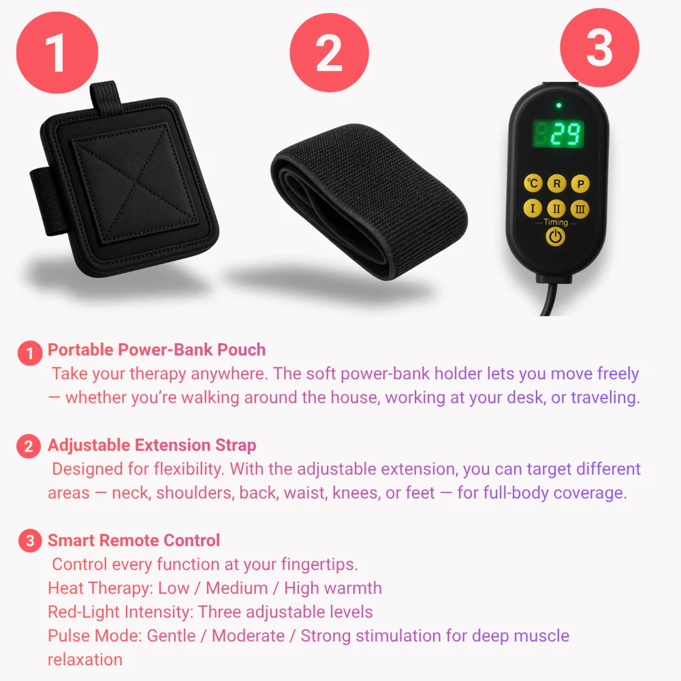 A powerful combination of Red Light, Infrared, Pulse Mode, and Heat Therapy — all in one flexible belt designed to unlock tension, support circulation, and soothe pain fast.