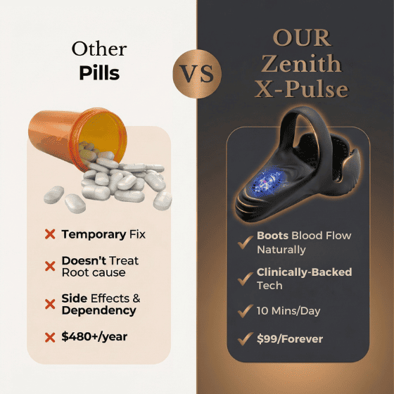 Zenith X-Pulse is a at-home performance device that uses targeted shockwave therapy and intelligent vibration to improve blood flow, enhance nerve function, support prostate health, and restore natural performance, all in complete privacy.